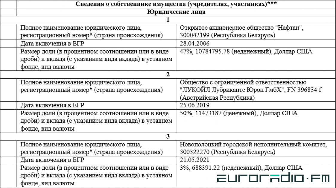 Кроме того, у компании появился новый собственник. Раньше завод 50% на 50% принадлежал “Нафтану” и “Лукойлу”. Теперь тремя процентами владеет Новополоцкий горисполком. Их взяли из доли “Нафтана”.