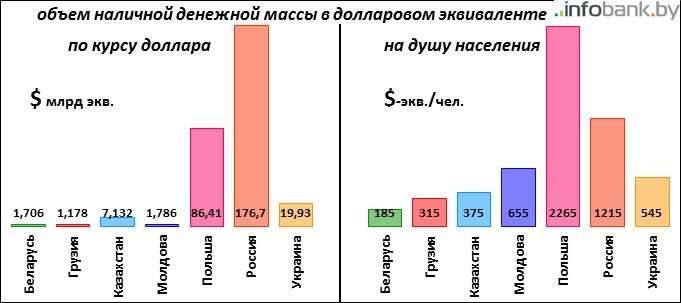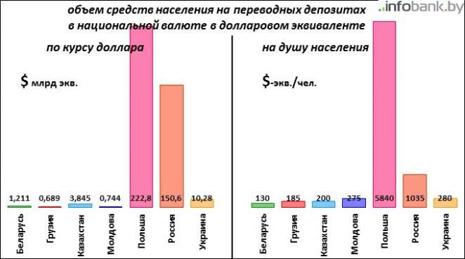 Вот, сравните объем средств населения на переводных депозитах в национальной валюте с объемом наличной массы в этих же странах.