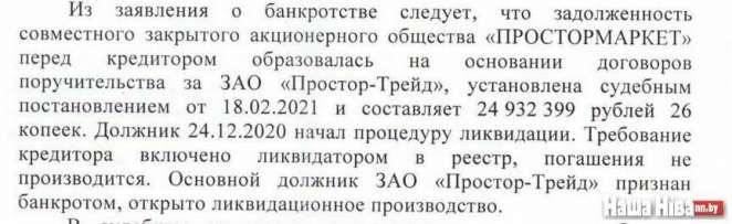«Дочка» Беларусбанка падает на банкротство «Простормаркета»: не могут вернуть 38 миллионов