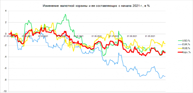 Валютная корзина после двух недель снижения выросла на 0,37%. Кстати говоря, последний раз все три иностранные валюты дорожали одновременно четыре недели назад, в конце августа.