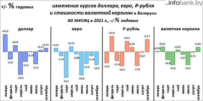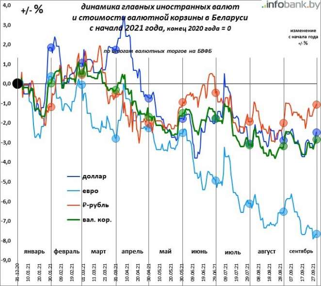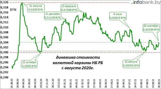 Правда, перед этим белорусский рубль заметно укрепился: к концу 2-й декады сентября, а именно 18-го числа, стоимость валютной корзины упала до одного из наименьших в этом году значений.