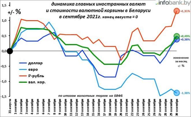 И валютная корзина в конце сентября уже стоит больше, чем в начале месяца: BYN-рубль по итогам сентября ослабел.