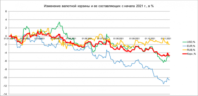 Рост доллара и евро перевесил падение российского рубля и в результате после четырех недель снижения валютная корзина выросла к белорусскому рублю на 0,16%. Столь скромный рост корзины свидетельствует о том, что ничего сильно страшного за неделю с белорусским рублем не произошло. А отдельная динамика валют, в том числе заметный рост доллара, всего лишь отражает его укрепление к российскому рублю.