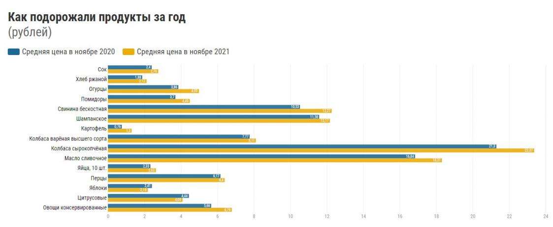Получилось, что наши продукты за это время подорожали на 10,19%, что немного ниже ноябрьской инфляции, которая составила 10,3%.