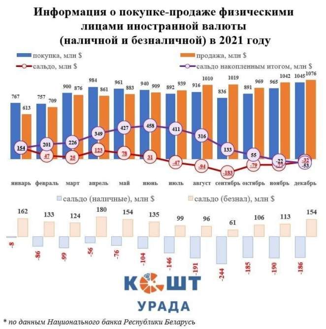 Большие объемы валюты продаются, но не многим меньшие — покупаются. Это значит, что у населения на руках постоянно находится много валюты, ее не стремятся положить на банковские вклады и вряд ли перепродают, стараясь играть на курсовой разнице. Все это может быть связанно с особенным стилем сберегательного поведения — получив на руки «белки», белорусы стараются защитить средства, переведя их как можно быстрее в твердую валюту. Когда же возникает необходимость в белорусских рублях — доллары оперативно меняют.