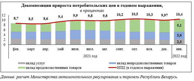 Министерство отмечает, что на 1-й квартал ежегодно приходится около 40 процентов увеличения всего прироста цен за год. В 2019 году инфляция за первые три месяца составила 2,6 процента (при факте 4,7 процента по итогу года), в 2020 году — 2,7 процента (7,4 процента), в 2021 году — 3,8 процента (9,97 процента).