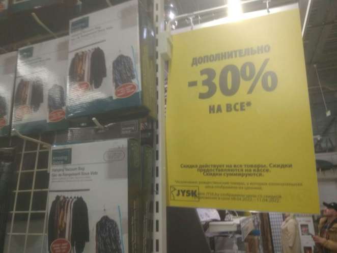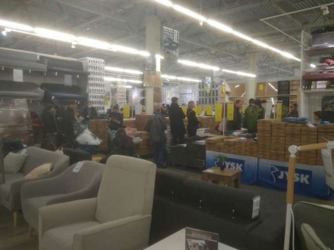 Уже вечером в магазинах сети наблюдаются серьезные очереди. Возможно, дело в скидках — по словам читателей, они достигают 50%. Вот такая ситуация наблюдается в Jysk на улице Горецкого.