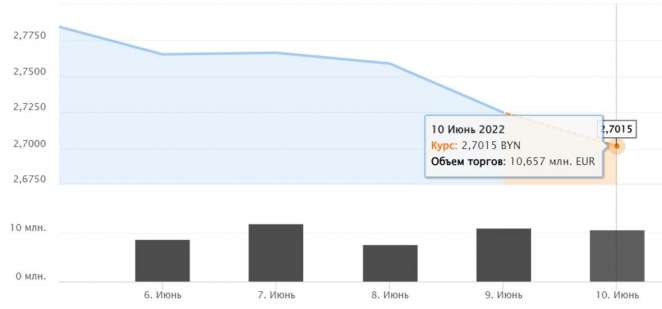 Евро подешевел за неделю на 3,05%, с начала года евро теряет в цене уже на 6,28%. Пятничные торги закрылись на отметке в EUR/BYN 2,7015%.