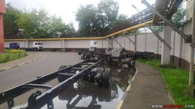 Теперь же, судя по всему, из-за проблем с поставкой запчастей на сборку и, похоже, самой сборкой, работники МАЗа собирают то, что собирается. В итоге выходит, что с конвейера сходит рама без кабины. Как на этом фото.