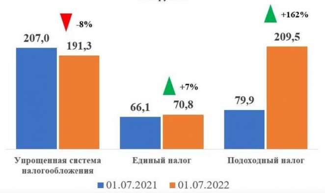 В результате за первое полугодие 2022 года государство собрало на 34% больше налогов от ИП, чем за аналогичный период прошлого года. Это несмотря на сокращение количества самих ИП.