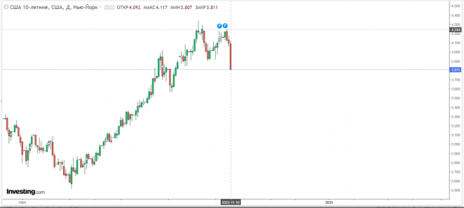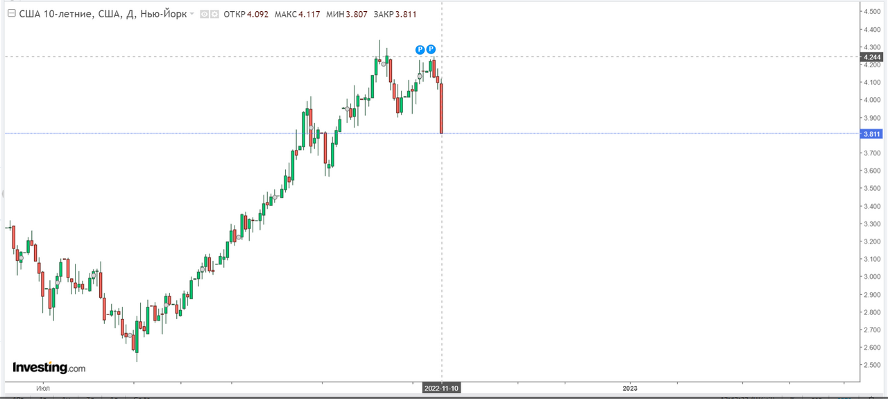 Причиной такого резкого изменения настроений на мировых финансовых рынках стал последний отчёт по инфляции в США за октябрь 2022 года, который был опубликован в четверг, 10 ноября.