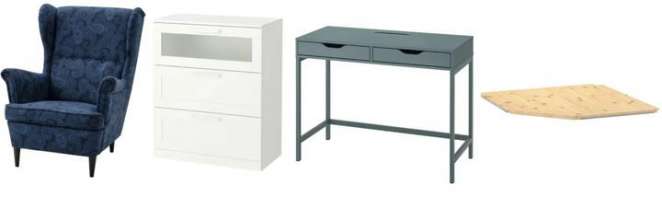 Мебель IKEA, при изготовлении которой используется древесина из Беларуси. Кресло «Страндмон» (производства польской компании Delkom), комод «Бримнэс» (производства литовской компании VMG), полка «Ивар» (производства совместного немецко-белорусского предпр
