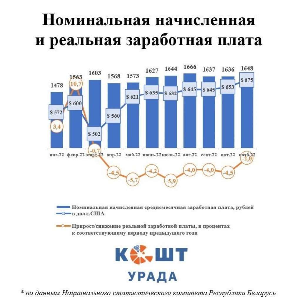 Оказалось, что в прошлом месяце она выросла до 1648 рублей, а с учетом низкого ноябрьского курса доллара в крепкой валюте вышло целых $675. Это — самый высокий показатель за все время существования Республики Беларусь. Кстати, предыдущий максимум был зафиксирован в декабре прошлого года — $662.