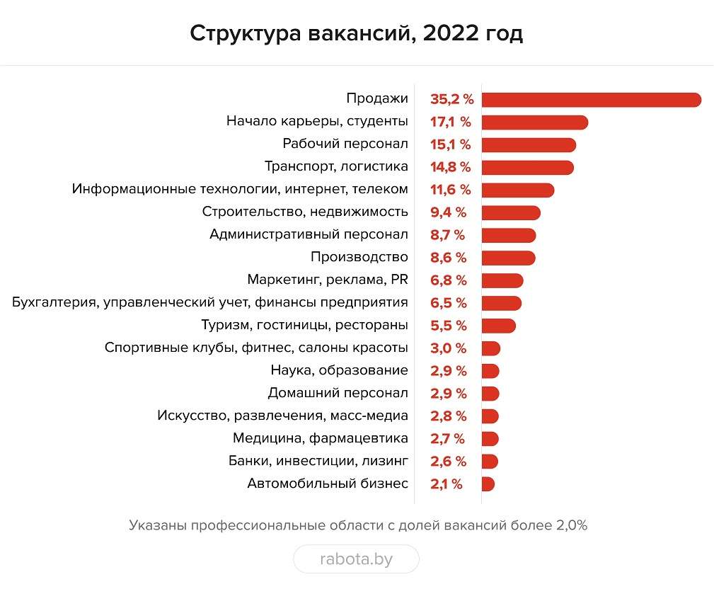 Структура ваканций на рынке труда в 2022 году. Иллюстрация rabota.by