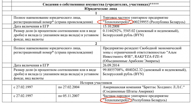 Со временем 39% акций «Белзарубежстроя» перешли сначала эмиратской компании Almando, а затем другой эмиратской фирме Alm Investments.