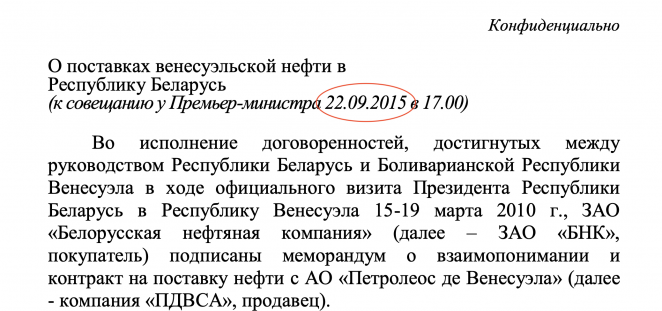 У расследователей есть копия документа, датированного сентябрем 2015 года, который готовили к совещанию премьер-министра Беларуси — тогда им был Андрей Кобяков. Из него следует, что белорусские власти и вовсе не собирались возвращать Венесуэле эти деньги. Если кратко, там говорится, что Минск решил «рассматривать задолженность не как белорусский долг, а как помощь Боливарианской Республики Венесуэла».