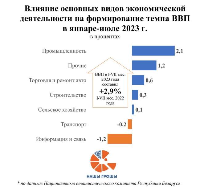 Вклад различных отраслей в формирование валового внутреннего продукта Беларуси за семь месяцев текущего года показывает любопытную картину.
