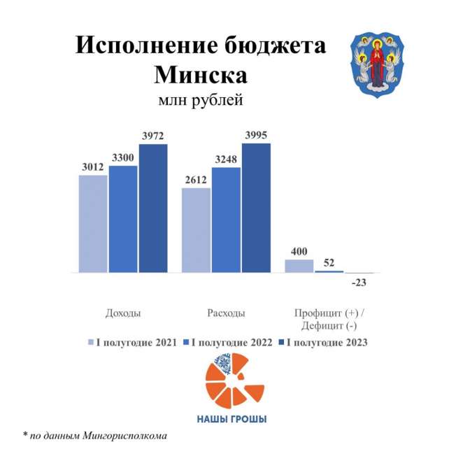 Бюджет Минска в первом полугодии 2023 года. Инфографика: телеграм-канал «Нашы грошы»