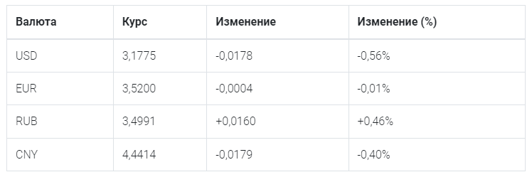А вот официальный курс евро будет отличаться от того, который сложился на бирже. Нацбанк Беларуси установил его на уровне 3,5363 BYN.