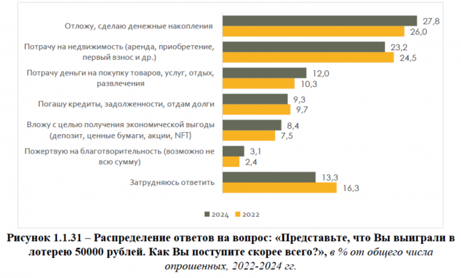 Предпочтут инвестиционные инструменты (ценные бумаги, акции и т.п.) всего лишь 8,4% опрошенных, а 28% предпочтут сберечь деньги.