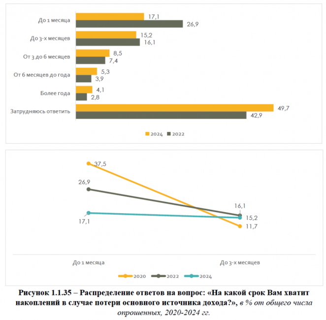По сравнению с прошлыми опросами наблюдается снижение числа респондентов, имеющих наименьшую подушку безопасности.