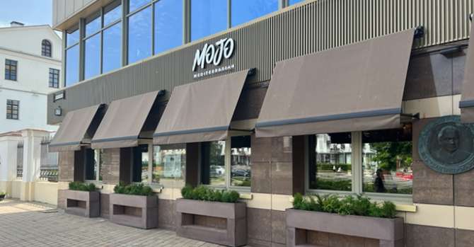 Ресторан Mojo открылся в июне 2020 года на площади Свободы, 17. До него тут работал бар еврейского стритфуда «Изи», а еще раньше — кафе «Сад».