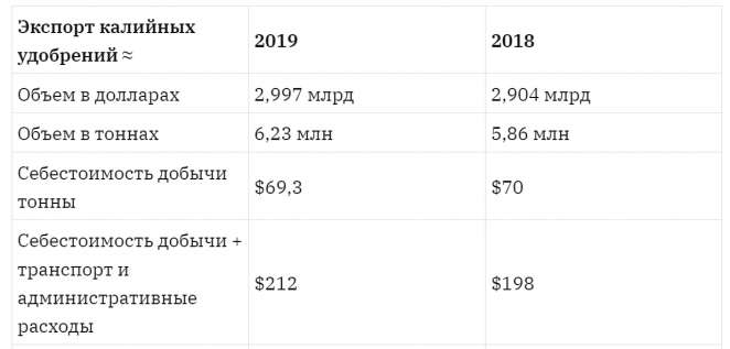 Мы взяли 2018 и 2019 годы — самые свежие из доступных финансовых данных Белкалия и Белорусской калийной компании и сравнили их с данными об объемах экспорта и валютной выручки за те же годы. Так мы вычислили примерную себестоимость добычи и транспорта удобрений в досанкционные годы.