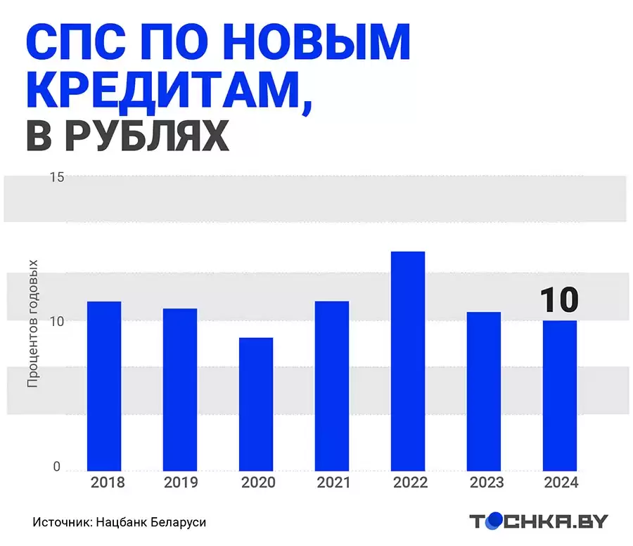 Так, при прогнозных параметрах 8,5–9,5% годовых СПС по новым рыночным кредитам банков в национальной валюте в среднем за 2024 год сложились на уровне 10,6% годовых против 8,9% в 2023-м.