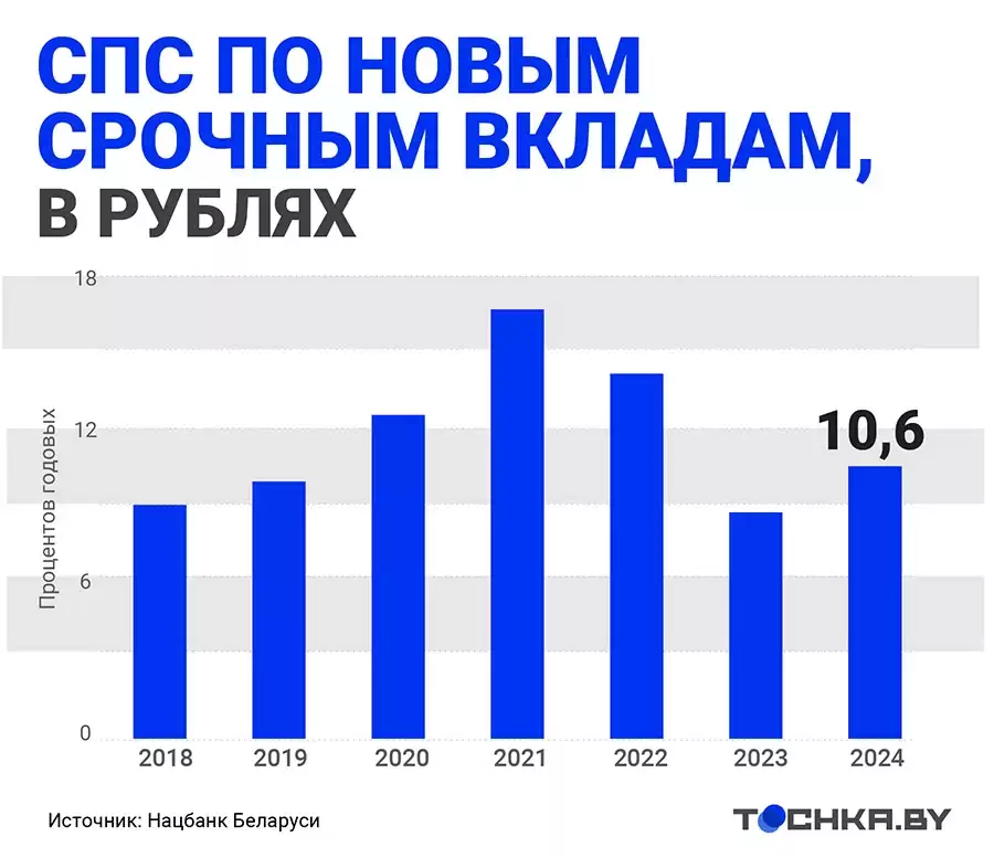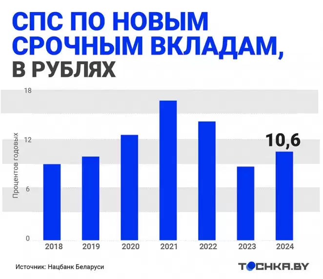 Кроме того, на процентные ставки в Беларуси опосредованно влияла их динамика в России. В результате значимого ужесточения экономической политики СПС по кредитам и депозитам на российском рынке выросли к концу 2024 года до 20% годовых и выше.