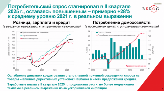 Слабую динамику, как сказал Харитончик, показал и внутренний спрос, хотя, по оценке Евразийского банка развития, в первом полугодии именно сферы, которые ориентированы на внутреннее потребление, тащили беларусскую экономику вперёд.