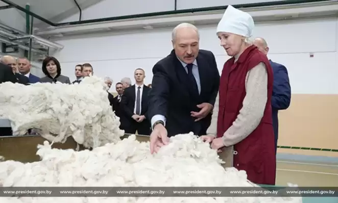 Лукашенко во время посещения Минского камвольного комбината в 2017 году