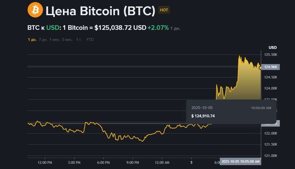 По данным платформы Binance, по состоянию на 10:05 биткойн просел до отметки 124 910, 74 доллара за монету.