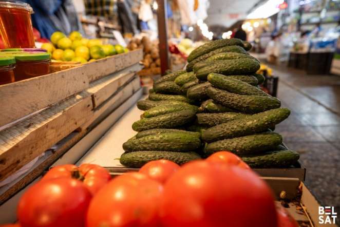 Продовольственный рынок в Тбилиси, Грузия. Огурцы и помидоры. 13 октября 2024 года. Фото: Белсат