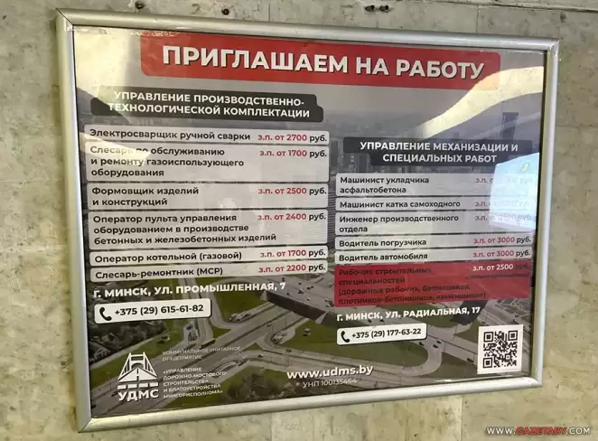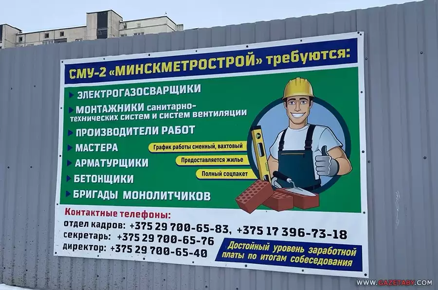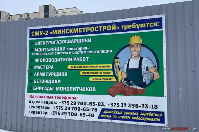 В Минске продолжается строительство новых веток метро и другие масштабные строительные работы. О дефиците кадров в строительной отрасли свидетельствуют объявления о наборе сотрудников СМУ-2 «Минскметрострой».