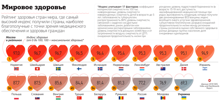 Беларусь оказалась 54-й в рейтинге здоровья стран мира