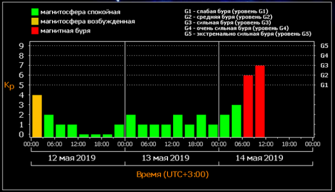 Стабилизация магнитного поля Земли ожидается к концу дня. Полностью в норму земное магнитное поле должно прийти к утру 15 мая 2019 года.55