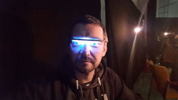 В декабре световой день в Финляндии и так короткий, а фестиваль SLUSH еще и проходил в огромном полуподвальном помещении с минимумом освещения, так что корреспондент Би-би-си также имел возможность испытать устройство на себе.