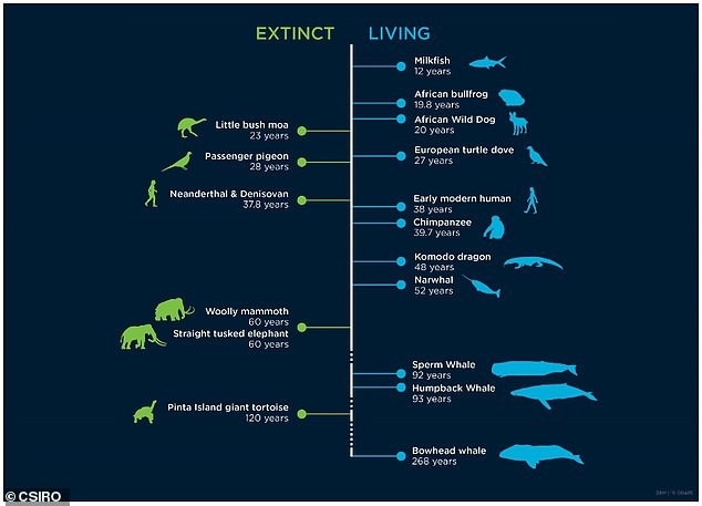 Другим любопытным открытием стал смоделированный возраст гренландского кита. Он оказался на 60 лет больше предполагаемого — целых 268. Учёные считают, что некоторые из этих ныне живущих животных родились задолго до того, как королева Виктория взошла на трон, но примерно в то время, когда капитан Кук прибыл в Австралию.