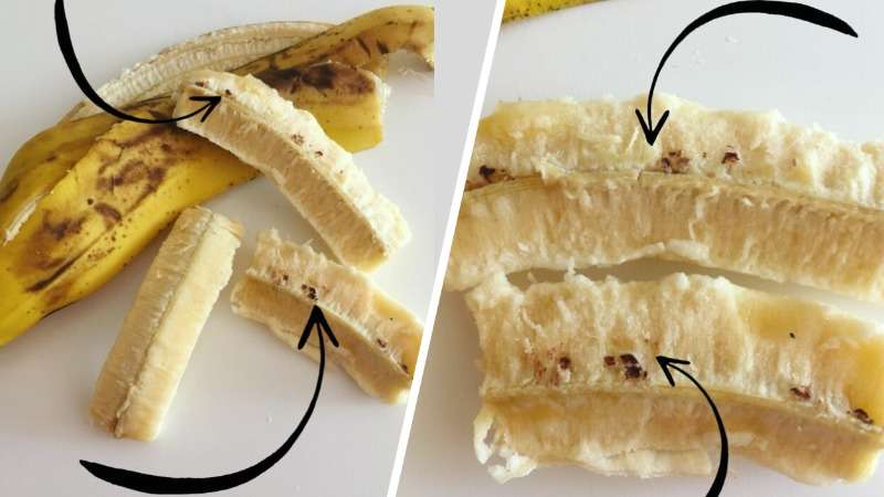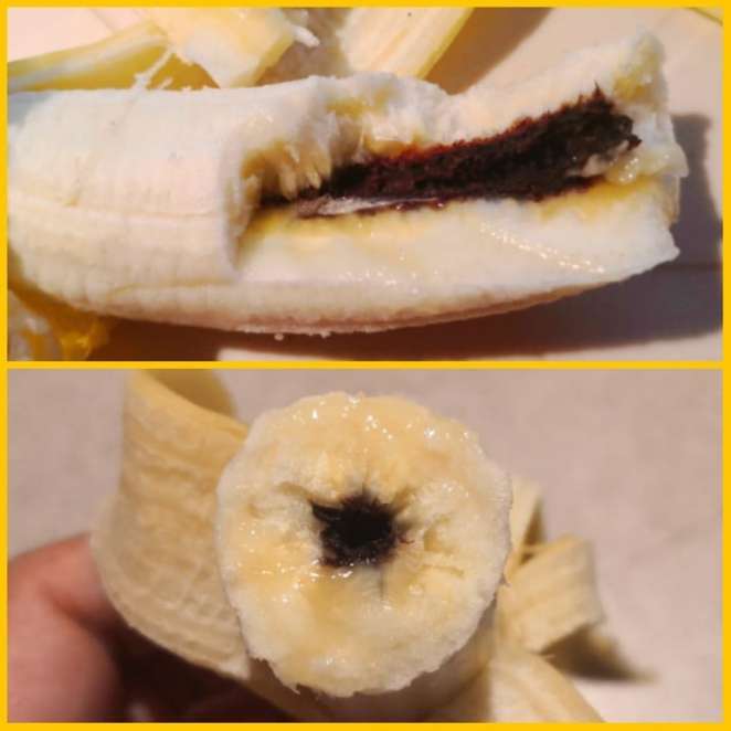 Вероятно, их поразил нигроспороз (болезнь, вызываемая паразитическими грибами). Обычно он не представляет большой угрозы для людей. При условии, что у вас нет на него аллергии. К сожалению, узнать об этом мы можем только постфактум. Поэтому для собственной безопасности лучше не есть бананы с темной линией по центру.