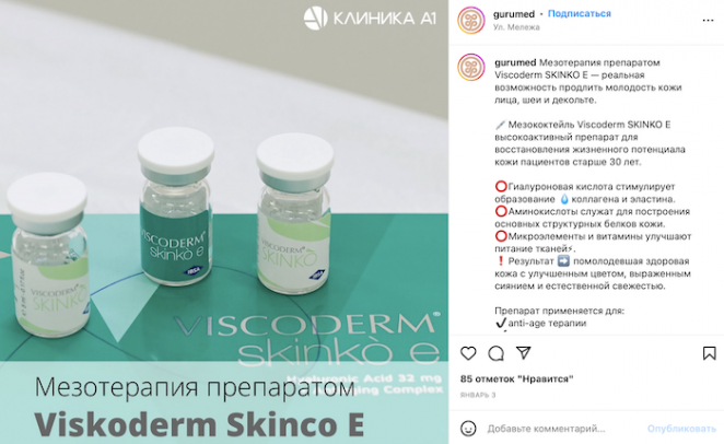 Один из старых постов. Видно, что на фото — логотип «Клиники А1», но название самого аккаунта уже другое