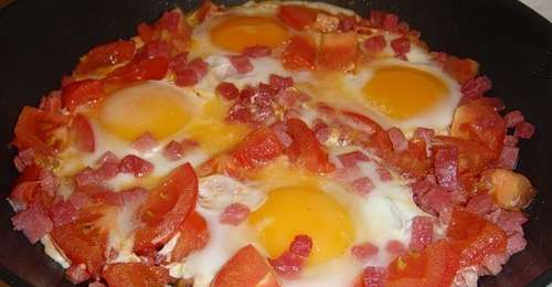 Яичница с помидорами и луком. Яйца — еще один продукт, будто бы созданный для завтрака. Высокое содержание белка помогает хорошо и надолго насытить организм и подстегнуть метаболизм, а низкая калорийность — поддержать фигуру. Результаты недавнего метаисследования подтвердили безопасность употребления яиц для сердца и сосудов, а завтрак, сочетающий в себе яйца, свежие помидоры и лук, врачи назвали самым полезным для сердечно-сосудистой системы.