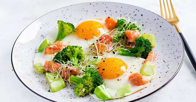 Красная рыба — лосось, форель. Такие продукты самые богатые витамином D. Вместе с яйцами они создают мощную комбинацию для поддержания иммунитета и костей.