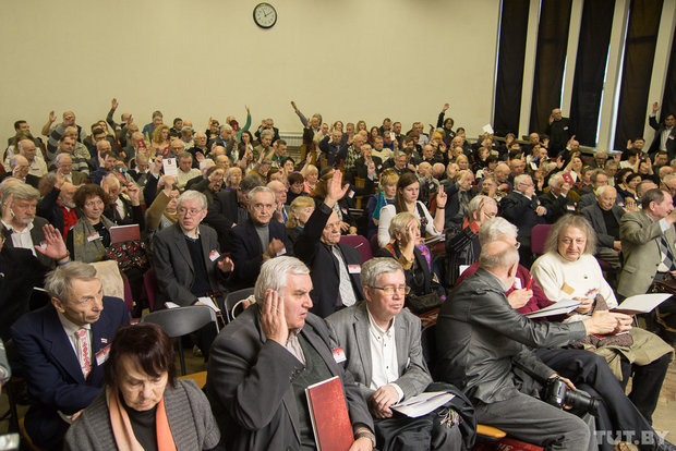 Между тем, на съезд СПБ пригласили представителей Министерства информации, Министерства культуры и Министерства юстиции. Не приехал никто — хотя на съезде официального Союза писателей с поздравлениями выступали министр культуры Борис Светлов и министр информации Лилия Ананич. Не было в зале и Светланы Алексиевич, члена СБП, которую тоже ждали. К слову, Нобелевского лауреата часто вспоминали на съезде со сцены. Например, в связи с налогом в 197 тысяч евро, который Алексиевич пришлось уплатить с премии.