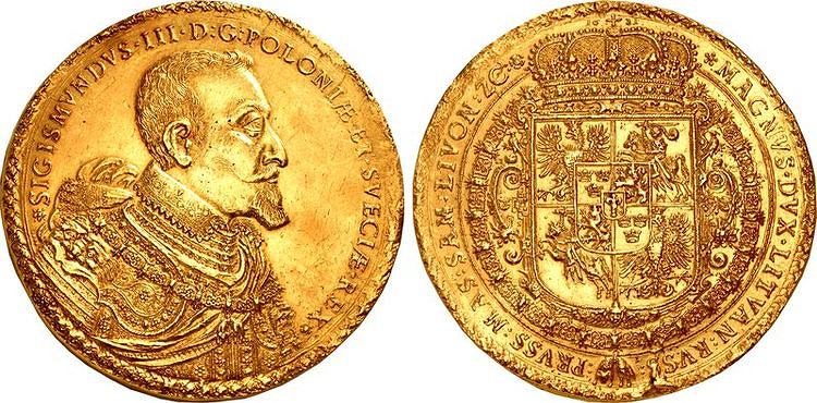 Монету отчеканили в Быдгоще. Исследователи полагают, что она была подарком королю или лицам из его ближайшего окружения. Другие полагают, что монету заказал сам Сигизмунд Ваза.