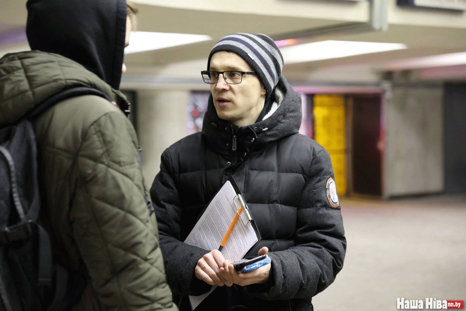 Дмитрий Дашкевич собирает подписи в защиту белорусского языка. Фото: Наша Нива