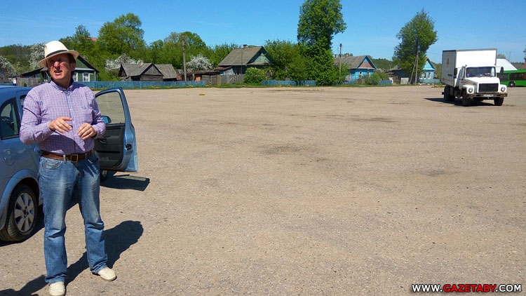 Алесь Пушкин предложил сельсовету благоустроить площадь в Бобре. Пустоту в центре он думает заполнить фонтаном. Фото: gazetaby.com