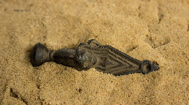 Наиболее яркая находка - бронзовый предмет, который не имеет аналогов на территории Восточной и Центральной Европы. "Он украшен личиной и, вероятно, является наконечником ножен меча. Изготовлен он был для знатного воина и связан с милитарной культурой германских племен периода Великого переселения народов. На сегодня это наиболее поздняя находка, которая может связываться с изучаемым памятником. Она дает основания для гипотезы о том, что селище в Ясковичах могло погибнуть между 400 – 460 годами в результате набега дружины воинов, участвовавших в сражениях на территории Подунавья в эпоху заката Римской империи", - отметили в БГУ.