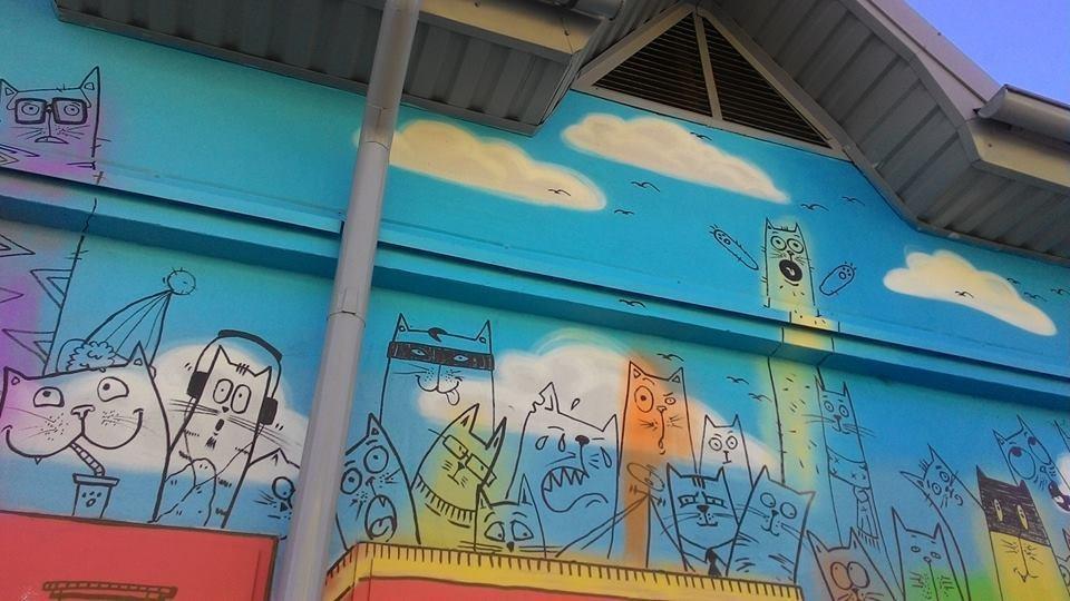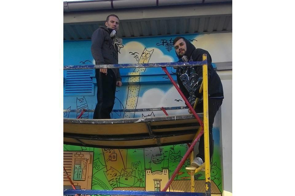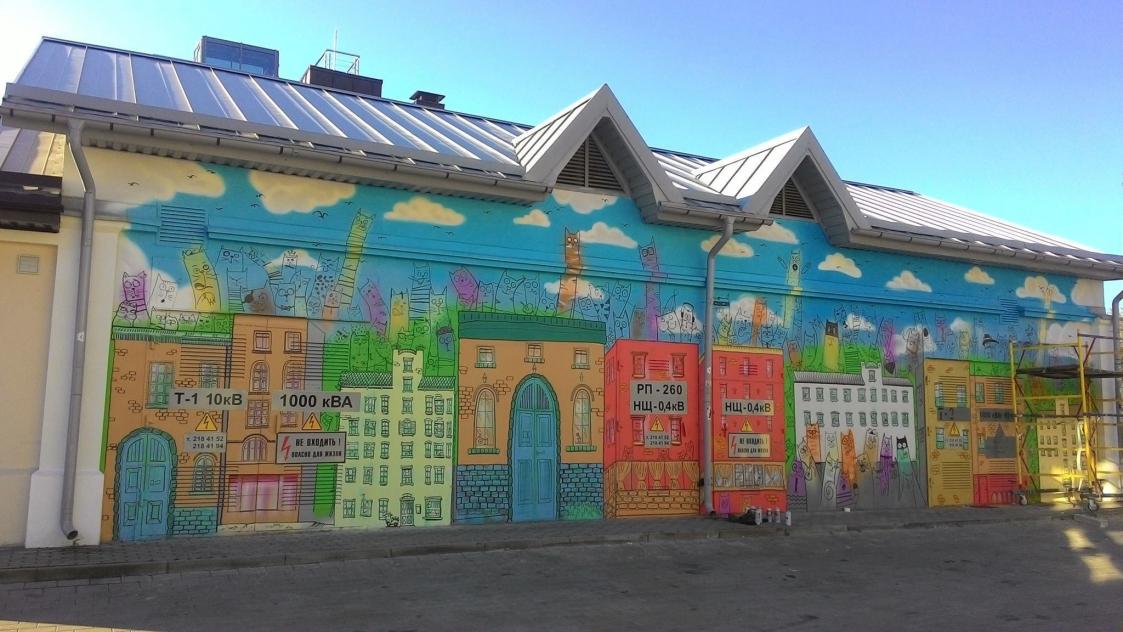 “Стрит-арт называется “Кэтсити”, – рассказывает художник. – Идея принадлежит Руслану. Мы так старались рисовать этих котиков, чтобы у каждого был свой характер, внешность, свои какие-то повадки, как и у людей, живущих в нашем городе”.