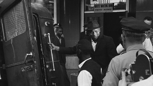 Джексон, Миссисипи: чернокожих пассажиров выгоняют оз зала ожидания "только для белых" на автобусной станции. Фото: GETTY IMAGES