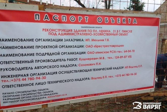 Разрушенный дом расположен в Пинске по адресу: площадь Ленина, 31. Он был построен в начале ХХ века. Несколько лет назад здесь располагался опорный пункт милиции, затем долгое время объект пустовал. Не так давно у дома появился новый владелец, который и начал работы по реконструкции. Как значится в паспорте, в перспективе здание должно было использоваться в качестве «административно-хозяйственного объекта».